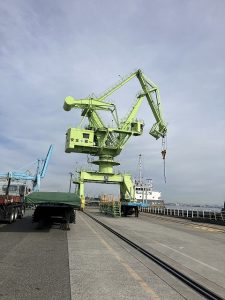 海上輸送された貨物を陸上のトレーラーへ移送する「積み替え作業」の際、水平引込式クレーンを利用されており、オペレーター様の視界をサポートするために弊社吊荷監視カメラを導入いただきました。