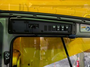 今回はお客様のご希望で、無線機の親機を運転席後方に設置させていただきました。